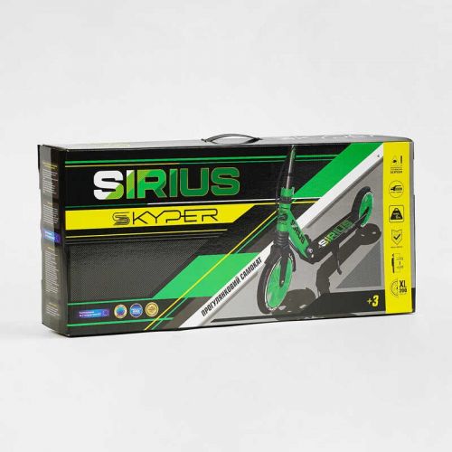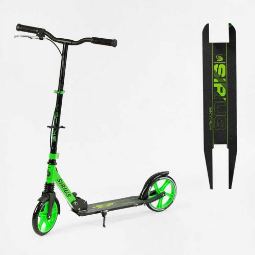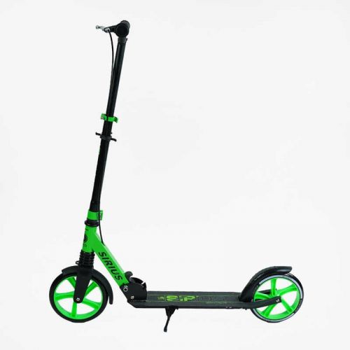 Самокат двоколісний Sirius, салатово-чорний, колеса PU 200 мм, 1 амортизатор, ручне гальмо, в коробці
