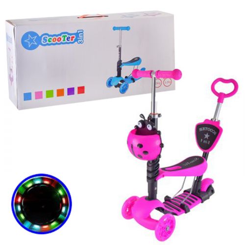 Товар укомплектований у транспортувальну упаковку, на якій можуть бути пошкодження. Дитячий триколісний самокат у чарівному дизайні у вигляді сонечка. Максимальне навантаження – 30 кг. Алюмінієве кермо, висота регулюється від 52 до 70 см. Ширина керма – 57 см. Ручки виконані з мякої рельєфної гуми. Дека виконана з пластику, розмір – 52х11 см. Оснащена заднім ножним гальмом. Колеса виконані з поліуретану. Діаметр передніх коліс – 11 см, задніх – 7.8 см. Підшипники – АВЕС.