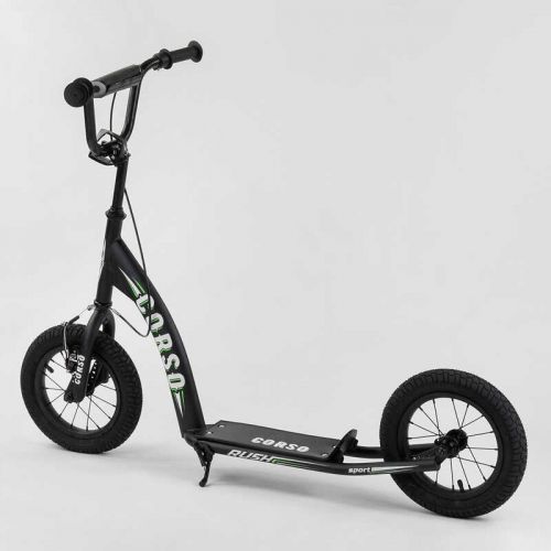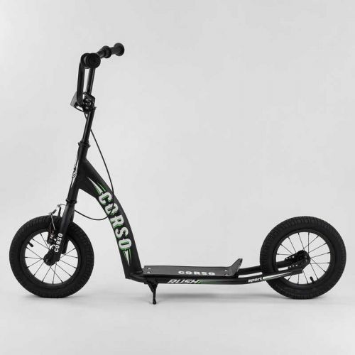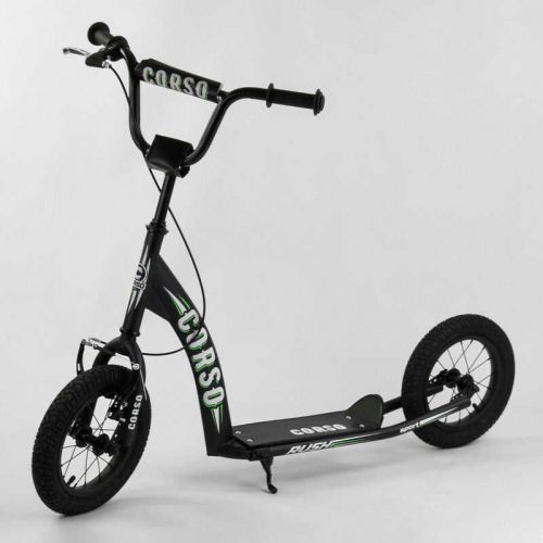 Двоколісний самокат Corso призначений для дітей від 3-х років. Рама самоката виконана з металу. V-подібне кермо надійно кріпиться до рами самоката, регулюється по висоті від 83 см до 95 см. Особливістю даної моделі, стали надувні гумові колеса. Завдяки таким колесам, прохідність самоката збільшується. На ньому можна їздити не тільки по асфальту і рівній дорозі, але і по ґрунтовій дорозі та тротуарній плитці.