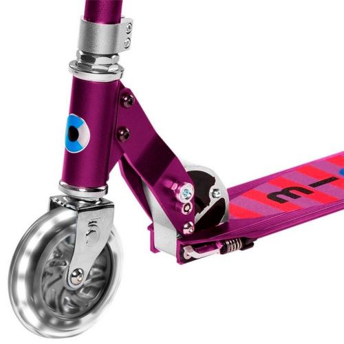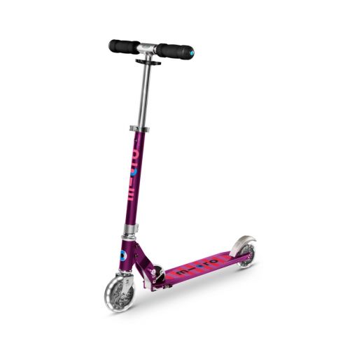 Дитячий самокат MICRO серії ‘Sprite LED’ – ФІОЛЕТОВИЙ досконалий та міцний двоколісний самокат. Він оснащений колесами, що світяться та складною рамою.