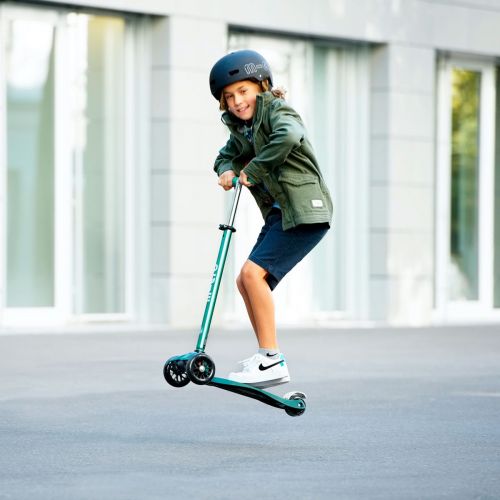 Дитячі самокати серії Maxi Micro Deluxe є найбільш досконалими та міцними самокатами для дітей дошкільного віку та школярів. На міжнародних виставках вони неодноразово визнавалися ʼсамокатами рокуʼ серед дітей і батьків.Виробник – швейцарська компанія Micro Mobility Systems AG, всесвітньо відома у виробництві самокатів для дітей та дорослих. Компанія заснована в 1996 році. На сьогодні продукція компанії постачається у 80 країн світу. Всі деталі самоката – від деки до підшипників – створені з нетоксичних матеріалів, що підтверджується наявністю сертифікатів якості. Крім цього, кожен самокат проходить велику кількість тестів на надійність і безпеку, щоб споживач міг отримати найбільш якісний та довговічний товар. Саме тому мільйони сімей у світі вибирають саме самокати Micro.Дитячий самокат – це не лише активне фізичне навантаження. З його допомогою у дитини покращуються баланс, координація і моторика. І для цього самокат має бути високотехнологічним і безпечним. Тому самокати Mini Micro Deluxе мають ряд особливостей:розроблені в співпраці зі швейцарськими професіоналами-медиками;оснащені запатентованим унікальним механізмом нахилу і повороту керма Maxi Micro;використовують особливий тип пластику з закругленими краями разом із Т-подібною ручкою, що робить його безпечним для дітей і дозволяє уникнути травм;стійка виконана з кольорового анодованого алюмінію. Це означає, що вона не лише зовні виділятиметься серед інших, але і витримає найжорсткіші удари при катанні;протиковзна силіконова підніжка має додаткові виступаючі елементи у вигляді логотипу Micro, які знижують ковзання ноги на деці при підвищеній вологості або під час дощу;модернізовані задні гальма забезпечать максимальний рівень безпеки;поліуретанові колеса з підшипниками стандарту АВЕС 9 дозволять пересуватися без шуму;додатково самокат позаду оснащений світловідбивними елементами.Додаткова унікальність серії «Еко» полягає у тому, що деталі та вузли цих самокатів виготовляються з пластику, отриманого у результаті переробки риболовних тенет, які щорічно виловлюються тисячами тон і складають біля 10% усіх пластикових відходів у океані.Характеристики:самокат підходить для дітей дошкільного віку та школярів (від 5 до 12 років) зростом до 150 сm і масою тіла до 50 kg;регульована по висоті телескопічна рульова стійка (67-91 сm);міцна дека, посилена скловолокном;розміри деки – 33х13,5х6 cm;дитячий триколісний самокат;Т-подібна стійка, яку можна відʼєднати для зручного транспортування самоката;високоякісні гальма, які мають сталеву пружинну вставку і не нагріваються при гальмуванні;колеса виготовлені з високоякісного поліуретану і укомплектовані підшипниками стандарту АВЕС 9, що забезпечує безшумне і комфортне пересування по тротуару або парку;вага самоката – 2,5 kg.Колір: зелений.Рекомендовано для дітей віком від 5 років.