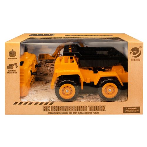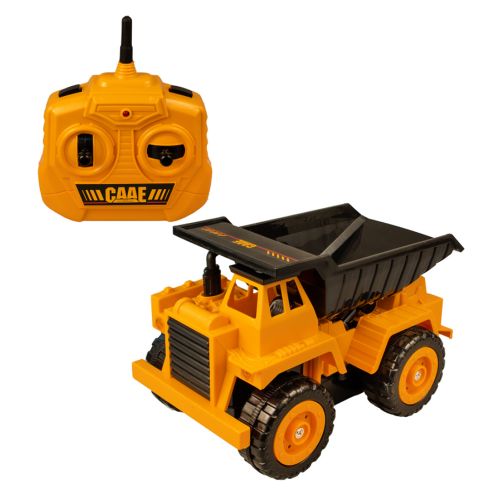 Інтерактивна іграшка на радіокеруванні “Самоскид”. Техніка добре деталізована та виконана в масштабі 1:32, копією справжньої машини. Іграшка керується з пульта дистанційного керування. Є функції їзди вперед/назад, рух колесами (розташованими з одного боку машинки), автоматичний та ручний рух ковшем. Розмір – 19 х 11 х 11 см. Пульт та самоскид працюють на батарейках (не йдуть у комплекті).