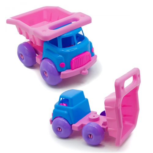 Пластиковий самоскид з відкидним кузовом з міцного пластику. Спереду на бампері є отвір для кріплення мотузки.