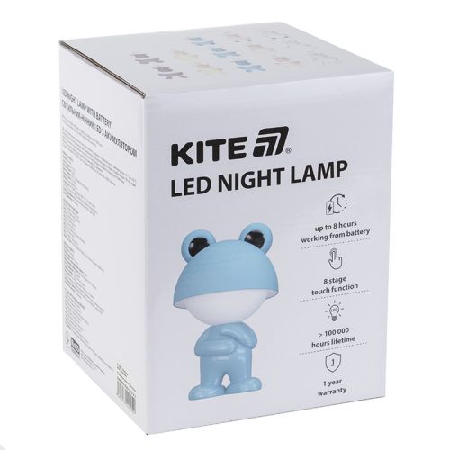 Світильник-нічник LED Kite K24-315-1-5 з акумулятором . Заряджається за допомогою USB-кабелю.Без адаптера в комплекті. Особливості: Матеріал: якісний міцний пластик. Цікавий дизайн у вигляді милого звірятка. Вхідна напруга: DC 5B 1A. Потужність світлодіодної лампи: 2.5 Вт. Вбудований акумулятор: літієва батарея 3,7В 1200мАг. Час заряджання: 3,5 годин 1 USB зарядний кабель, 1 лампа. Температура світла: 4000k біле світло та кольорове світло RGB. Яскравість світла: 55 люменів. Час роботи: 4 години (максимальна яскравість)/8 годин (мінімальна яскравість). 8-ступінчаста функція дотику: 1-й: 50% яскраве біле світло – час роботи до 8 годин; 2-й: 100% яскраве біле світло – час роботи до 4 годин; 3-й: увімкнено червоне кольорове світло – час роботи до 3,5 годин; 4-й: увімкнено зелене світло – час роботи до 3,5 годин; 5-й: увімкнено синє світло – час роботи до 3,5 годин; 6-й: автоматична зміна кольорів – час роботи до 3,5 годин; 7-й: фіксований колір світла – час роботи до 3,5 годин; 8-й: вимкнути світло .