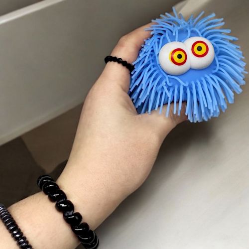 Гумовий антистрес-світяшка у вигляді милого волохатого чудика. Кумедна яскрава іграшка розміром 9х9х9 см. Виконана з якісних, безпечних матеріалів. Має різнокольорове підсвічування (включається при ударі). За допомогою петельки на кінці шнурочка можна закріпити іграшку на пальці та відбивати її рукою. Такі ігри відмінно розвивають дрібну моторику та спритність.