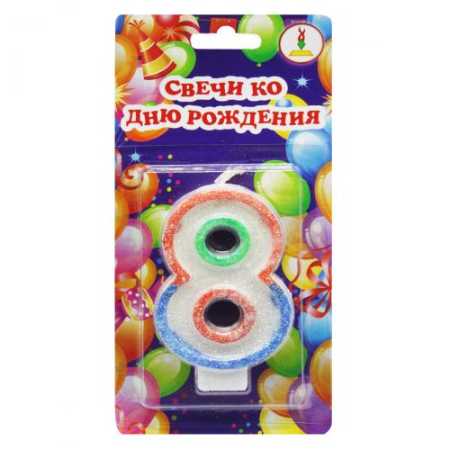 Свічка декоративна для святкового торта. Виконана у формі цифри. Прикрашена блискітками. Розмір свічки – 7х4 см. У комплекті 1 свічка.