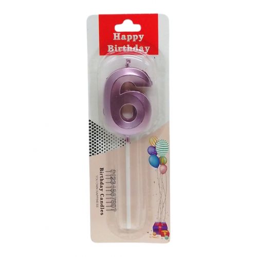 Свічка для торта “Цифра 6” металік, фіолетова