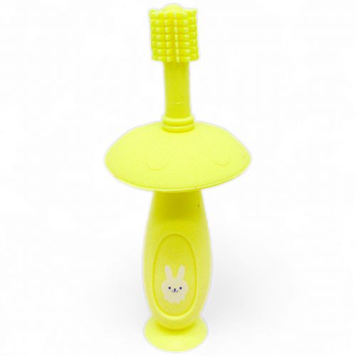 Силіконова щіточка зі щетинками на 360 градусів. Надзвичайно м’яка та гнучка. Її можна використовувати і в якості прорізувача, і в якості першої зубної щітки, аби привчити малюка чистити зубки. Щіточка має захисне кільце, воно запобігає надто глибокому проникненню щітки в ротову порожнину та гарантує безпечне використання. Для зручності зберігання, щітка кріпиться до гладкої поверхні за допомогою присоски. Матеріал: силікон. Рекомендований вік використання: 6+ місяців.