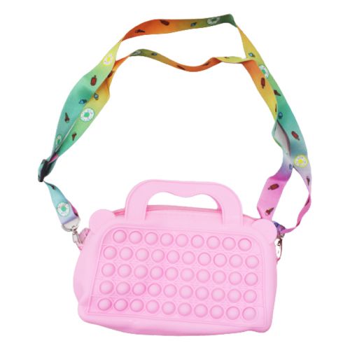 Мила силіконова сумочка Pop IT. На пухирці можна натискати і вони будуть видавати приємний звук. У комплекті із сумочкою є ремінець, за допомогою якого можна носити її на плечі. Довжина ремінця регулюється: від 60 до 110 см. Кріпиться до сумки за допомогою карабінів. Розмір сумочки 20х11х4, 5 см.