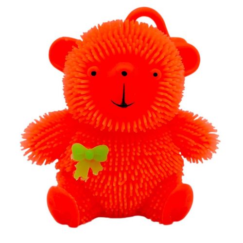 Кумедна світяшка у вигляді ведмедик. Іграшка порожня всередині й наповнена повітрям по типу надувної кулі. Всередині іграшки також є пластикова світяшка, що активується при ударі об поверхню. Виконано з якісних та безпечних матеріалів. Для дітей старше 3-х років. Якщо іграшка трошки здута, можна накачати її за допомогою звичайного медичного шприца з голкою (на іграшці є спеціальний отвір).