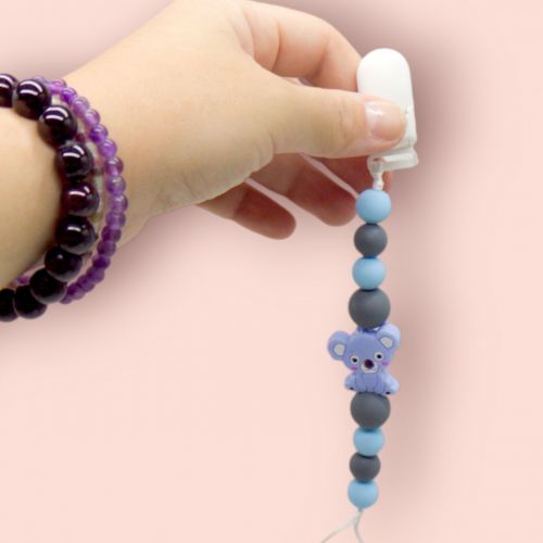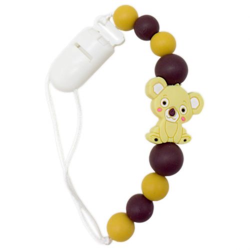 Силіконовий тримач “Коала”. Більше жодних загублений пустушок та прорізувачів. Тримач легкий, майже непомітний. Довжина тримача – 24 см. Кріпиться тримач до одягу/візочка/чого-завгодно за допомогою пластикової кліпси. Дитина не зможе відстебнути її самостійно. Силіконовий тримач зроблений повністю з харчового силікону – безпечного для дитини – його можна гризти.