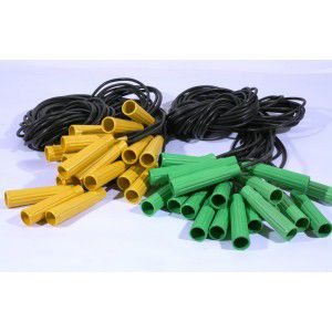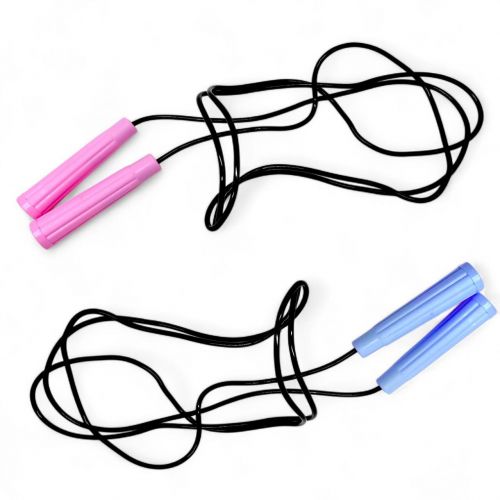 Гумова скакалка з кольоровими пластиковими ручками. Довжина скакалки: 2,6 м. Різні кольори ручок в асортименті. Ціна за штуку.