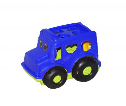 Сортер- автобус “Бусик №1”. Пластикова машинка-сортер допомагає дітям познайомитися з геометричними фігурами. Завдання дитини – підібрати форму відповідну отвору. Розвиває дрібну моторику малюків координацію, логіку, увагу і фантазію.