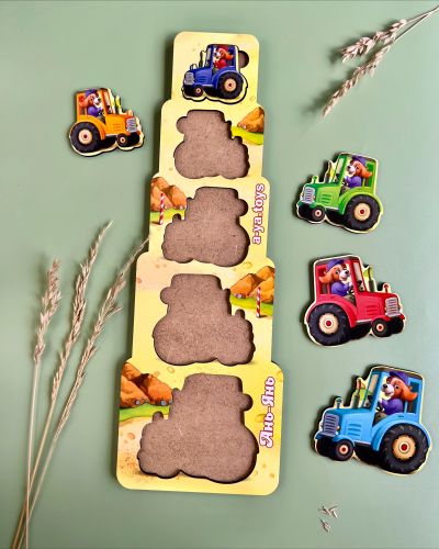 Сортер “Більше-менше”. З даним набором можна наочно пояснити дитині, що таке розмір і поняття “великий, середній, маленький”. Можна вивчати разом рахунок від 1 до 5. Також, іграшка буде розвивати дрібну моторику, пам’ять і увагу.