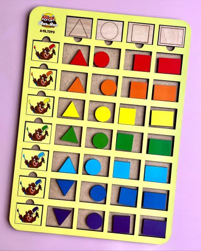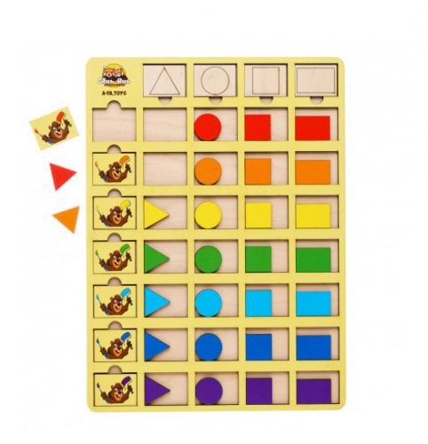 Развивающая деревянная игра сортер-вкладыш. Нужно подобрать подходящие по цветам фигуры. Игра – отличный помощник в изучении фигур, счета и цветов. Размер игрушки 32х23 см.