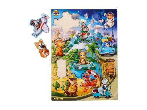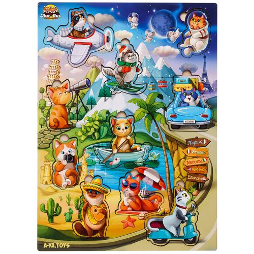 Сортер-вкладиш – яскравий та тематичний фон цього сортера дітям буде розглядати та вивчати у деталях, а 10 милих вкладишів-котиків зручно діставати пальчиками та вкладати на свої місця за формою.