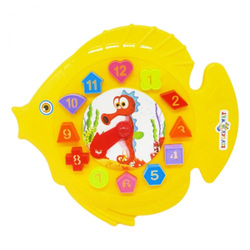 Сортер- годинник “Рибка” – розвиваюча іграшка, призначена для сортування предметів за формою. На іграшці вирізані отвори за формою фігурок, які потрібно в них вставляти. Дитина запамʼятає назви основних геометричних форм і кольорів, навчиться користуватися аналоговим годинником.