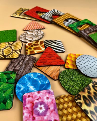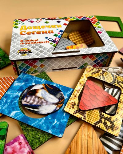 Дерев’яний сортер “Де чий візерунок?” познайомить малюка з різними тваринами. Нижній шар прикрашений візерунками у забарвленні різних тварин. Головне завдання – правильно співвіднести візерунок та картинку з твариною. Допоможе у розвитку колірного сприйняття, логіки, посидючості, уважності. Розмір рамки 16х23 см.