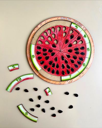 За допомогою такого кольорового сортера малюк легко вивчить цифри і освоїть рахунок. Так само, підійде для вивчення дробів. І освоїти поняття “частина ти ціле”. Розмір – 23х23 см.