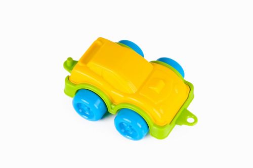 Яскрава пластикова машинка “Міні”. Має петельку спереду і гачок ззаду, за допомогою яких машинку можна чіпляти до інших автомобілів.
