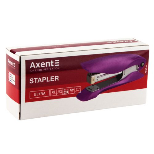 Степлер серії Axent Ultra виконаний в яскравих кольорах і ергономічному дизайні, який підвищує зручність в роботі. Призначений для ручного або настільного скріплення аркушів паперу. Зроблений з якісного пластику – легкого і міцного, стійкого до навантажень. Зручний у використанні – надійний механізм подачі скоб з міцного металу забезпечує легку подачу скоб в робочу зону, скріплення без осічок і просту заміну скоб. Має віконце для контролю наявності скоб і вбудований дестеплер, що дозволяє заощадити час, коли потрібно видалити скобу.