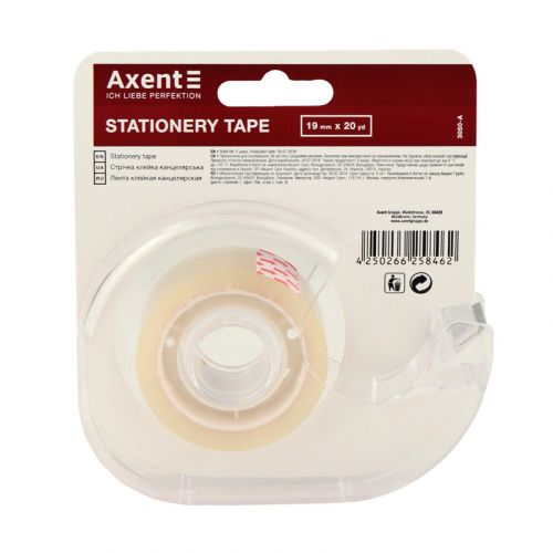 Прозора канцелярська клейка стрічка використовується в офісній, банківській та побутовій сфері для склеювання пошкоджених документів, скріплення сторінок, розклеювання оголошень, захисту написів, виготовлення етикеток, для упаковки подарунків, коробок, пакетів та ін. Стрічка канцелярська Axent має ідеально прозору глянцеву поверхню. Стрічку практично не видно на різних поверхнях. Диспенсер дозволяє максимально акуратно, швидко і без зусиль відрізати потрібну частину стрічки, економить час.