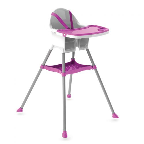 Стілець для годування обладнаний ременями безпеки та пластиковою перегородкою для дитячих ніжок, що гарантує безпеку малюка. Ніжки стільця металеві та прогумовані, решта – пластик. Стільниця знімна, з отвором під склянку. Розмір у зібраному вигляді – 97 х 67 х 68 см. Для дітей від 6 місяців до 3-х років. Запакований у дві коробки.
