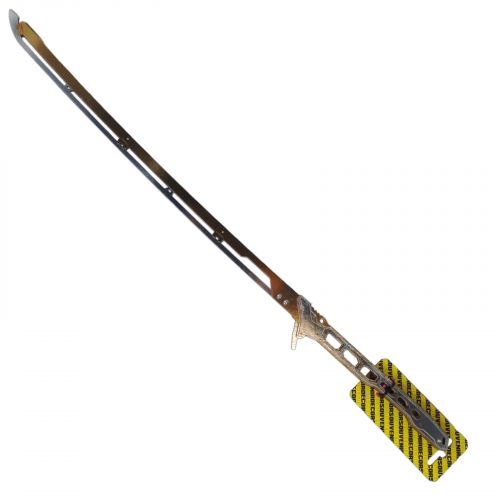 Модель меча сувенірна “Кіберкатана GOLD”. Довжина – 72 см. Виконано з добре відшліфованої фанери, із сріблястим та золотистим покриттям на лезі. Екологічно чисті та безпечні матеріали. Прекрасно підійде для колекціонування, рольових ігор, косплея чи тематичних фотосесій.
