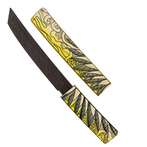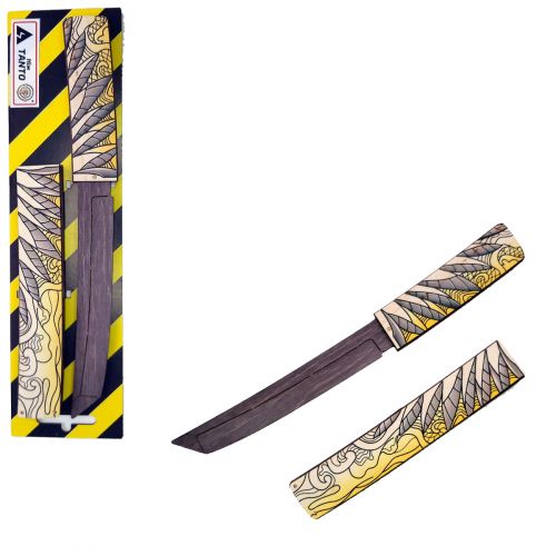 Ніж сувенірний “TANTO ДОДЖО”. Матеріал: фанера. Довжина ножа – 28 см, ширина ручки – 3 см. Чудовий подарунок-сувенір. Ніж деревʼяний, якісний та міцний. Не заточений, гострі частини закруглені та зашліфовані, повністю безпечний. Вкритий красивими японськими візерунками. Для дітей віком від 6 років.