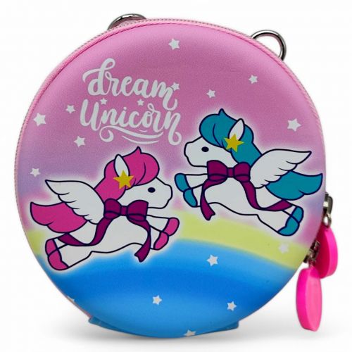 Гарненька сумочка круглої форми буде чудовим подарунком малюку. Має твердий корпус, одне відділення на блискавці. Для зручності перенесення сумочка оснащена регульованим тканинним ремінцем, котрий можна зняти за потреби. Розмір виробу – 13х4,5х13 см. Виготовлено з безпечних та якісних матеріалів.