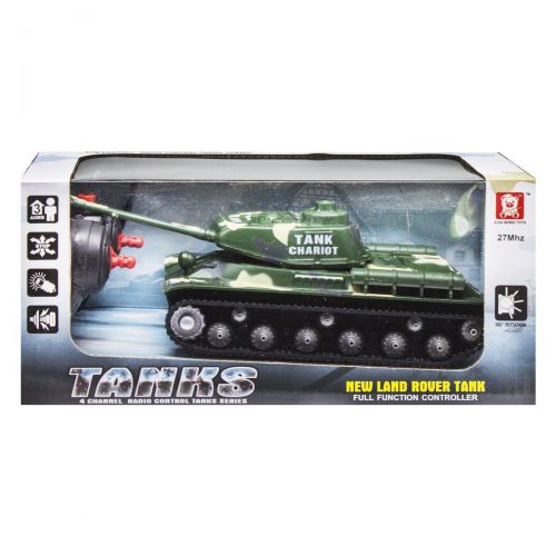 Танк на радіоуправлінні буде хорошим подарунком дитині. Управляти можна за допомогою зручного пульта управління. Розмір танка – 18 х 9 см. Танк світиться, є звукові єффекти. Виконаний з якісного пластику. Для дітей від 6 років.
