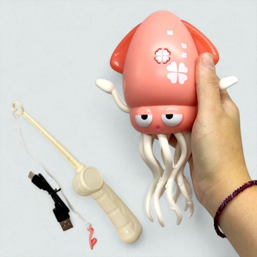 Іграшка вигляді миленького кальмара. Заряди іграшку, натисни на перемикач (має два режими) – і спостерігай, як кальмар ніби оживає починаючи танцювати та кататися завдяки колесам! З ним ніколи не буде нудно, особливо з його чудовою музикою та барвистим сяянням. В комплекті присутня USB зарядка, та вудочка на яку можна зловити кальмарчика. Виготовлений з якісних та міцних матеріалів. Рекомендований для діток від 4 років.