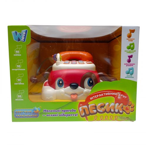 Телефон-каталка “Песик інтерактивний друг” – це справжній острівець дитячих відкриттів. Грайся з усмішкою, навчайся з натхненням! “Дзинь-дзилинь” – швидше знімай слухавку, це буде весела, захоплива і повчальна розмова! Інтерактивний телефон зі слухавкою, весела машинка і милий песик поєднують у собі захопливий світ гри та навчання. Іграшка розповідає вірші, читає казки, озвучує скоромовки й загадки, а також співає мелодійні пісні українською мовою. Стимулює розвиток мовлення й уяви, тренує памʼять і логічне мислення, допомогає малюкам легко навчитися рахувати.