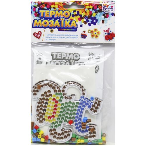 Набір для творчості “Термомозаїка” – це мозаїка із пластмасових різнокольорових намистин циліндричної форми. Ці намистини одягаються на основу – спеціальні планшети з короткими штирьками, а потім прогладжуються праскою через термопапір (кальку). При високій температурі верхній шар пластику плавиться, і намистини скріплюються між собою.