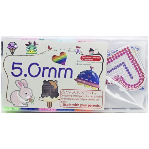 Набір для творчості “Термомозаїка” – це мозаїка, яка є пластмасовими різнокольоровими намистами циліндричної форми. Ці намистини одягаються на основу – спеціальні планшети з короткими штирьками (у наборі є 2 основи), а потім пропрасовуються праскою через термопапір (кальку). При високій температурі верхній шар пластику плавиться, і намистини скріплюються між собою.