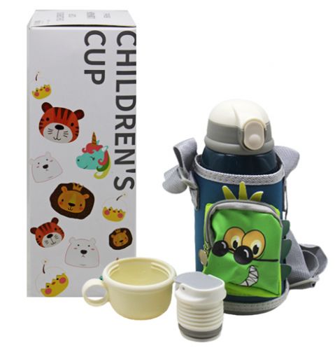 Дитячий термос-поільник з трубочкою. Цікавий дизайн, зручний у використанні. Виготовлений із нержавіючої сталі. У комплекті є спеціальна сумочка-чохол на ремінці, пробка та кришка-чашечка. Міцний, надійний корпус. Висота: 20 см. Обʼєм термосу: 550 мл.