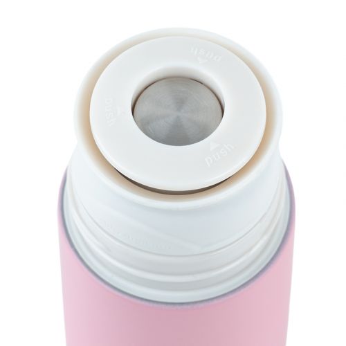 Особливості термоса: • об’єм 500 мл — оптимальний на щодень; • зберігає температуру до 6 годин — напій залишається приємним на смак; • високоякісна нержавіюча сталь AISI 304 — безпечна, довговічна, не змінює смак; • клапан для наливання — натискаєш і наливаєш, без зайвих рухів; • кришка-чашка з ручкою — пити можна з горнятка, зручно і вдома, і надворі; • зовнішнє пластикове покриття кришки — приємне на дотик, не нагрівається; • лаконічний дизайн — універсальний вигляд для дітей, підлітків і дорослих; • естетична подарункова упаковка — підходить для подарунку без додаткового пакування; • розмір 8,8х6,8х24,8 см. Рекомендовано не наливати окріп або зачекати хвилину перед закриванням, щоб уникнути зайвого тиску від пари.