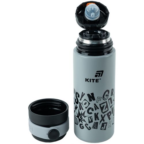 Термос Kite з чашкою та стильним дизайном. Особливості: • об’єм 500 мл — оптимальний для школи, прогулянок і подорожей; • внутрішня колба з нержавіючої сталі AISI 304 — безпечна та довговічна; • зберігає температуру до 6 годин — тепло та прохолода зберігаються надовго; • зручна кришка-чашка з силіконовою ручкою — з неї приємно пити; • широкий отвір — легко мити й доглядати; • поїльник всередині — зручно пити напої, які вже достатньо охололи для прямого пиття; • зовнішні стінки не нагріваються — безпечно для рук; • стильний принт — виразний, чіткий, стійкий до стирання; • герметичне закривання — напій не проливається; • металева сіточка фільтрує напій; • стильна подарункова упаковка — приємна на дотик коробка із віконцем; • розмір 7х21,2 см. Щоб уникнути надлишкового тиску, рекомендуємо не наливати окріп або зачекати хвилину перед закриттям термоса.