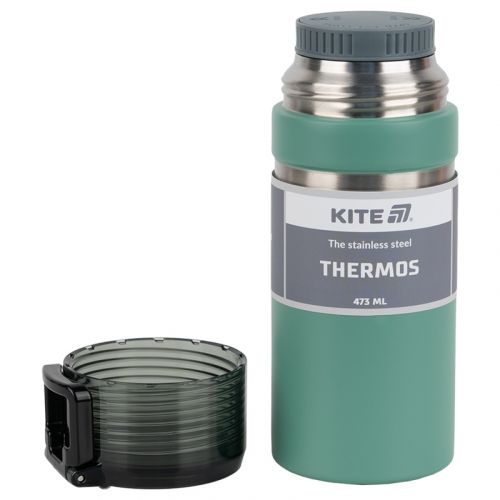Термос Kite 473 мл. Компактний і зручний. Матеріал: нержавіюча сталь Внутрішня та зовнішня колба зі сталі AISI 304, її хімічний склад та властивості роблять її найбільш придатною для використання у харчовій промисловості. Добре утримує тепло. Надійніший та міцніший за термос зі скляною колбою. Має функціональну чашку. Розмір: 193x75x81мм