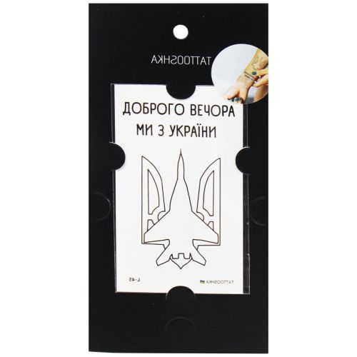 Набір татуювань-перебивок “Tattooshka”. В упаковці дві патріотичні татуювання. Вирізати необхідне тату, наклеїти на руку або іншу частину тіла, змочити теплою водою, відклеїти. Розмір листа з татуюванням: 10,5х6 см.