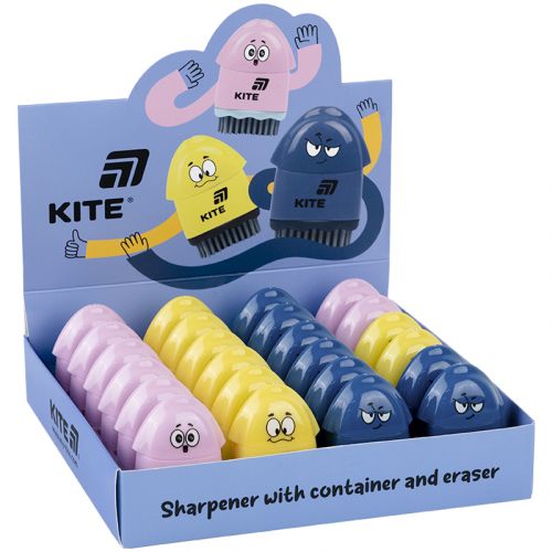 Точилка з контейнером та гумкою Kite K25-365 Faces – багатофункціональний аксесуар для навчання і творчості. Компактна і функціональна. Займає мінімум місця в пеналі. Точилка з міцним сталевим лезом з легкістю підточує олівці, не пошкоджуючи грифель. Місце заточування залишається гладеньким, без щербин і зазубрин. Стружка потрапляє в контейнер, залишаючи робоче місце бездоганно чистим. Знімна гумка виготовлена з якісного синтетичного каучуку з нейтральним ароматом. Гумова щіточка – м’яка і приємна на дотик. З її допомогою можна скидати зі сторінки залишки гумки.