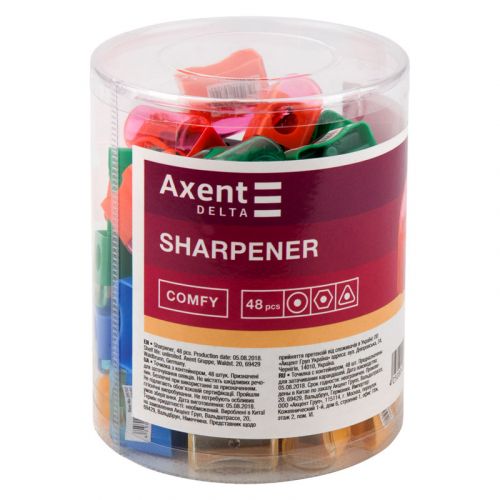 Пластикова точилка з контейнером Delta by Axent Comfy легко і акуратно заточує олівці завдяки гострому міцному лезу. Має компактний прозорий контейнер. Кришка надійно кріпиться, запобігаючи мимовільному висипанню вмісту контейнера. Виготовлена з міцного пластику. Яскраві кольори.