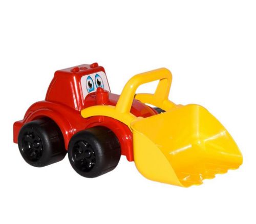 Яскравий пластиковий трактор із зображенням смішного обличчя. Рухомий ківш. Розмір іграшки 27х14х12 см. Іграшка виконана із пластику.