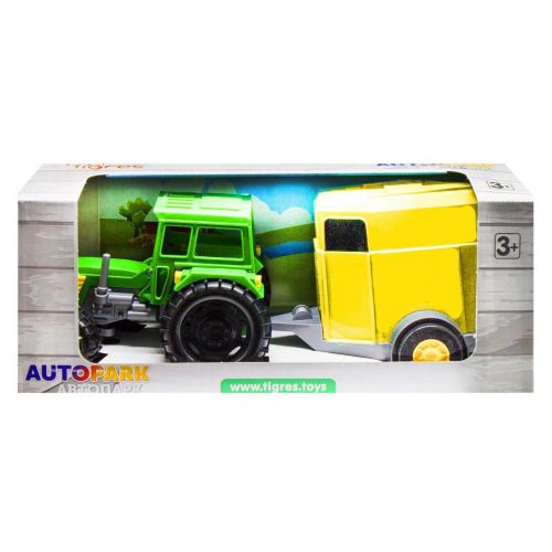 Трактор – це відмінний подарунок для хлопчика, який захоплюється технікою. Дана модель трактора має причіп і сам трактор, яка здатна повертатися в сторони і підніматися. Іграшка виготовлена з якісного пластику, який є безпечним для дитини. Усередині причепа є кінь.