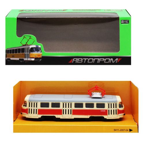 Трамвай інерційний із серії “Автопром”. Виконаний з якісних та безпечних матеріалів, висока деталізація. Довжина трамваю: 15 см.