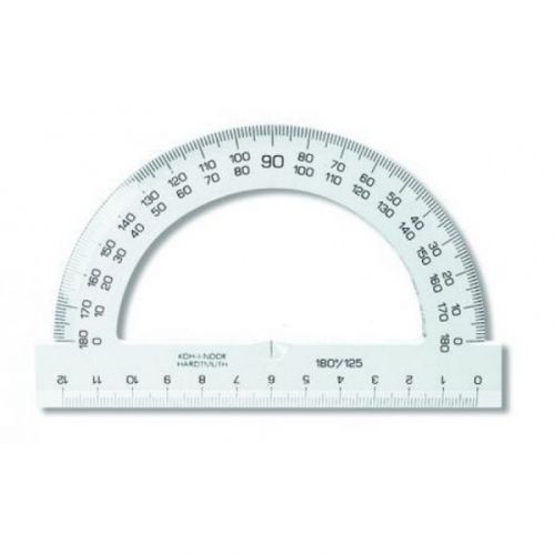 Прозора лінійка-транспортир на 12 см та 180 градусів. Виконана із міцного пластику. Стане в нагоді на уроках математики та праці.