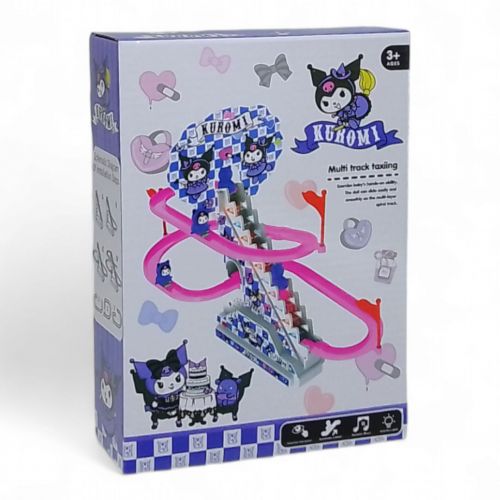 Незвичайна іграшка складається з: сходи, гірки, 3 фігурки Куромі і додаткових аксесуарів-декорацій. Працює від 2-х батарейок АА (немає у комлекті). Після запуску і установки фігурок на верх, вони почнуть спускатися по зигзагоподібній гірці, а потім, самостійно, залазити по сходах. І так по колу. Зі світловими ефектами та музикою.