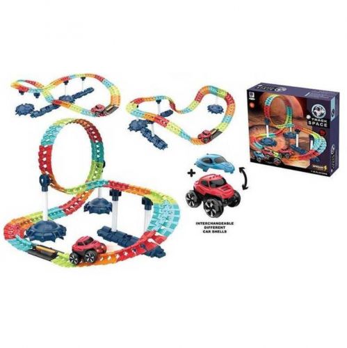 Пориньте у світ неймовірних пригод з новим треком “Track Space”. Цей унікальний набір дозволяє самостійно створювати захоплюючі траси з крутими поворотами, вражаючими перепадами висот і божевільними петлями. Машинка, що працює від батарейок, не тільки мчить по ваших створених трасах з максимальною швидкістю, а й підсвічує шлях яскравими вогниками фар, створюючи атмосферу нічних гонок. Це не просто гра, це справжня пригода, де щоразу створюється унікальна траса для нових вражень. У наборі 1 машинка, але 2 варіанти корпусу на вибір. 96 деталей.