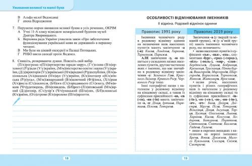 Навчальний тренажер “Зміни в українському правописі”. У посібнику висвітлено основні зміни в українському правописі, схвалені Кабінетом Міністрів України 2019 року. У цій книжці зіставлено старий і новий варіанти написання загальних і власних назв, українських і слів іншомовного походження, наведено нові правила. Мʼяка обкладинка. 47 сторінок. Мова: українська.