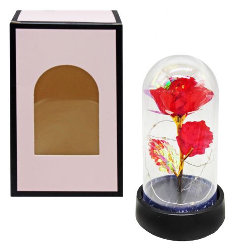 Пластикова колба з елегантною пластиковою розочкою і вбудованою світлодіодною підсвіткою. Цей товар не тільки служить відмінним доповненням до домашнього інтерʼєру, але і стане прекрасним подарунком для близьких і друзів. Розмір іграшки: 15 х 8,5 х 8,5 см. Батарейки в комплекті.
